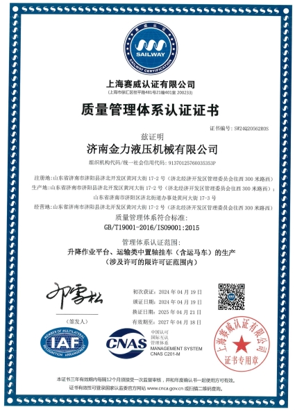 质量管理体系认证证书