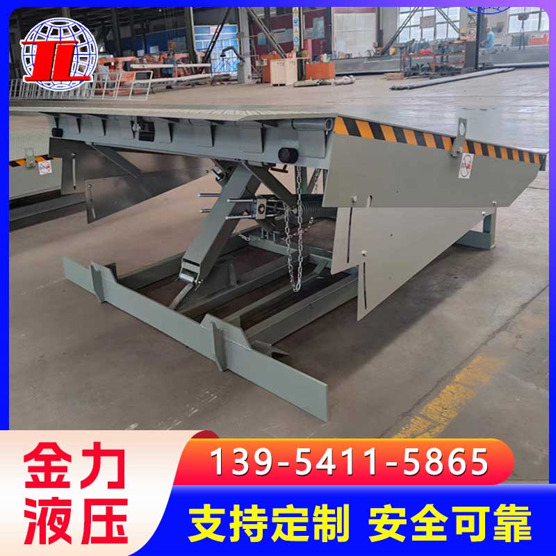 主体结构:通常由高强度钢材制成,主要包括一个可升降的平台和一个与货车车厢搭接的过桥。平台部分用于承载叉车及货物,而过桥则是连接平台与车厢的通道。
